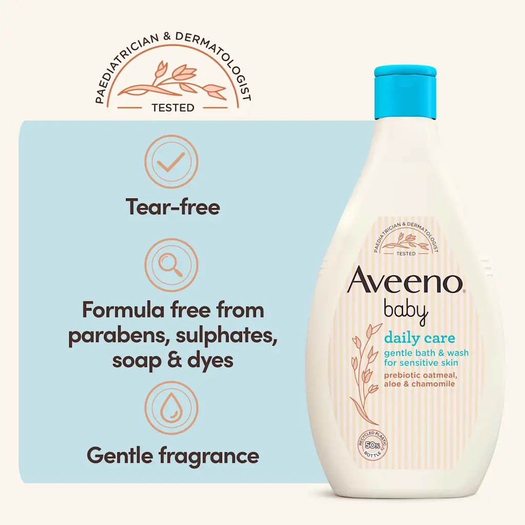AVEENO® Daily Care Gentle Bath & Wash,400ml – Gentle Oatmeal Cleanser for Baby Skin | Yellow Touch