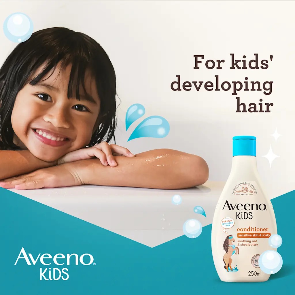 AVEENO® Kids Conditioner 250ml – Gentle Oat Extract Hair Softener for Sensitive Kids Scalp | Yellow Touch